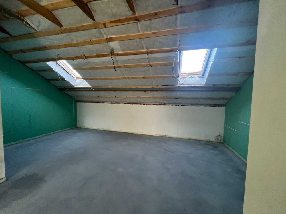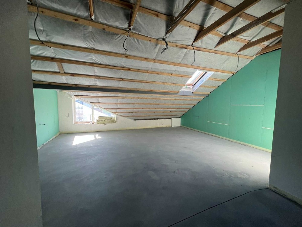 • також виконано багатошарове утеплення даху на мансарді мінеральною ватою та паробарʼєрною мембраною — стеля готова під фінішне оздоблення.