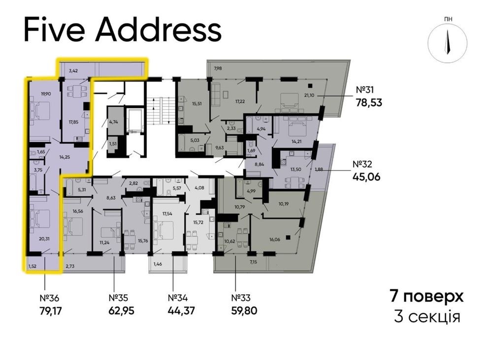 Пропонуємо 2-кімнатну квартиру площею 79,17 м² у житловому комплексі Five Address (вул. Раковського, 24А, Львів).