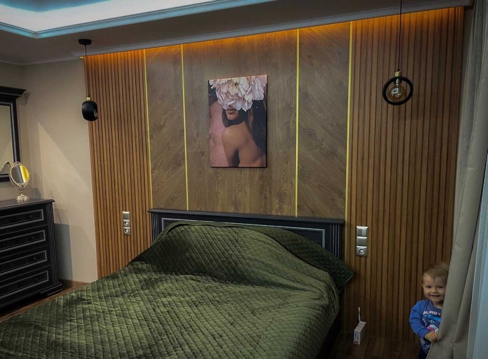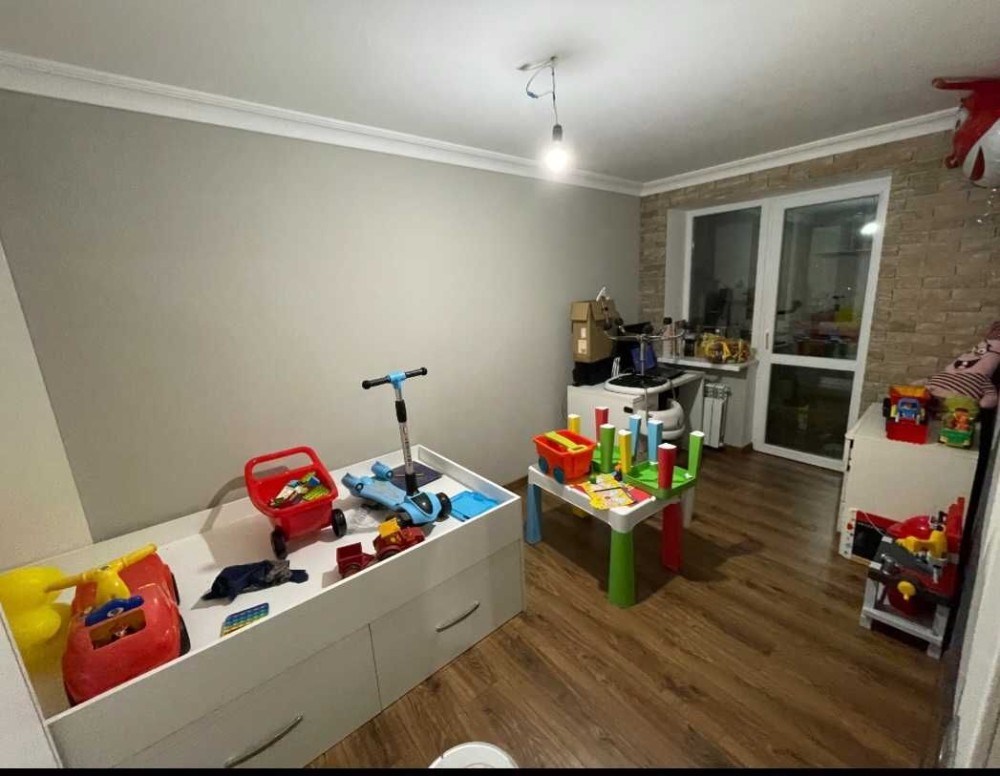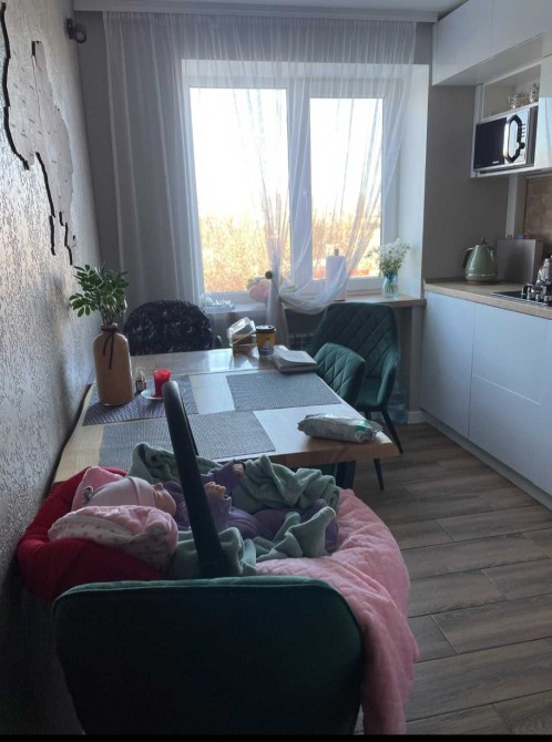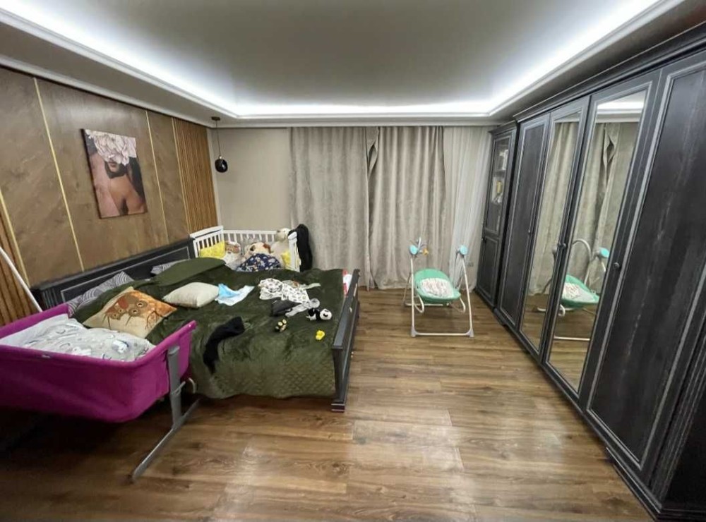 Двокімнатна квартира площа 52 м2, санвузол суміжний 7, кухня 7,5. Після дизайнерськиго ремонту, лоджія панорамне вікно, натяжна стеля в залі, декоративна штукатурка в кухні. Вбудована кухня витяжка, газова плита, холодильник, фільтр для води. Якісні вхідні двері, в коридорі є 2 шафи під верхній одяг і побутові речі. В дитячій кімнаті ліжко.
