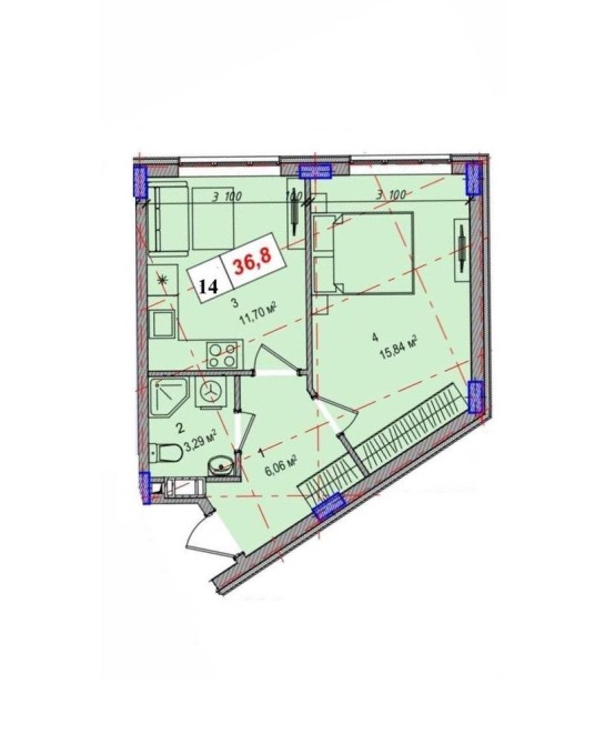 • Общая площадь 36.8 м2