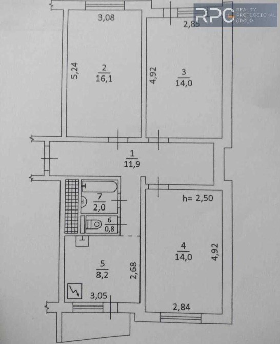 Загальна площа 68.6 м2, житлова площа 44.1 м2 , висота стелі 2.5 м Три окремі кімнати ; 16.1 / 14.0 / 14.0 м2 Кухня 8.2 м2 ( варильна поверхня ) Туалет та ванна роздільні. Є бойлер на кухню та ванну. Коридор 9.8 м2 Кладова 2.1 м2 Два балкони - в кімнаті. На на кухні засклений. Вікна двох кімнат дивляться на схід, однієї кімнати та кухні - на захід. Відремонтовані та працюють 2 ліфти - вантажний та пасажирський. Прибудовано місце для консьєржа. Відремонтовано дах. Є свій майданчик для паркування авто.