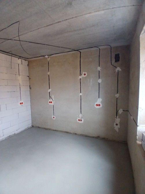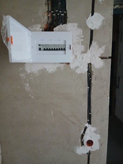 Розведено електричний кабель на освітлення та розетки ,встановлено підрозетники та зібрано щиток.