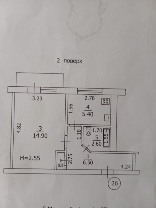 Продам однокімнатну квартиру в середині дома , 2й поверх із 5 поверхівки
