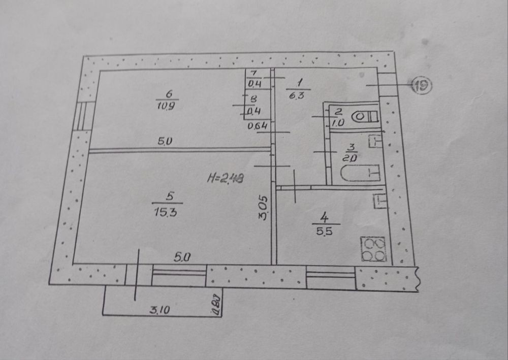 • Площадь кухни 5.5 м2