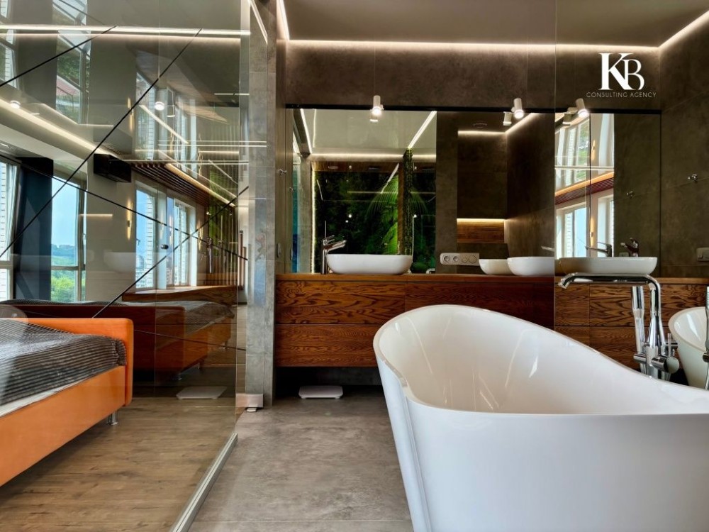 2 котли, тепла підлога, світло дизайнерське — дзеркала, освітлення, атмосфера.