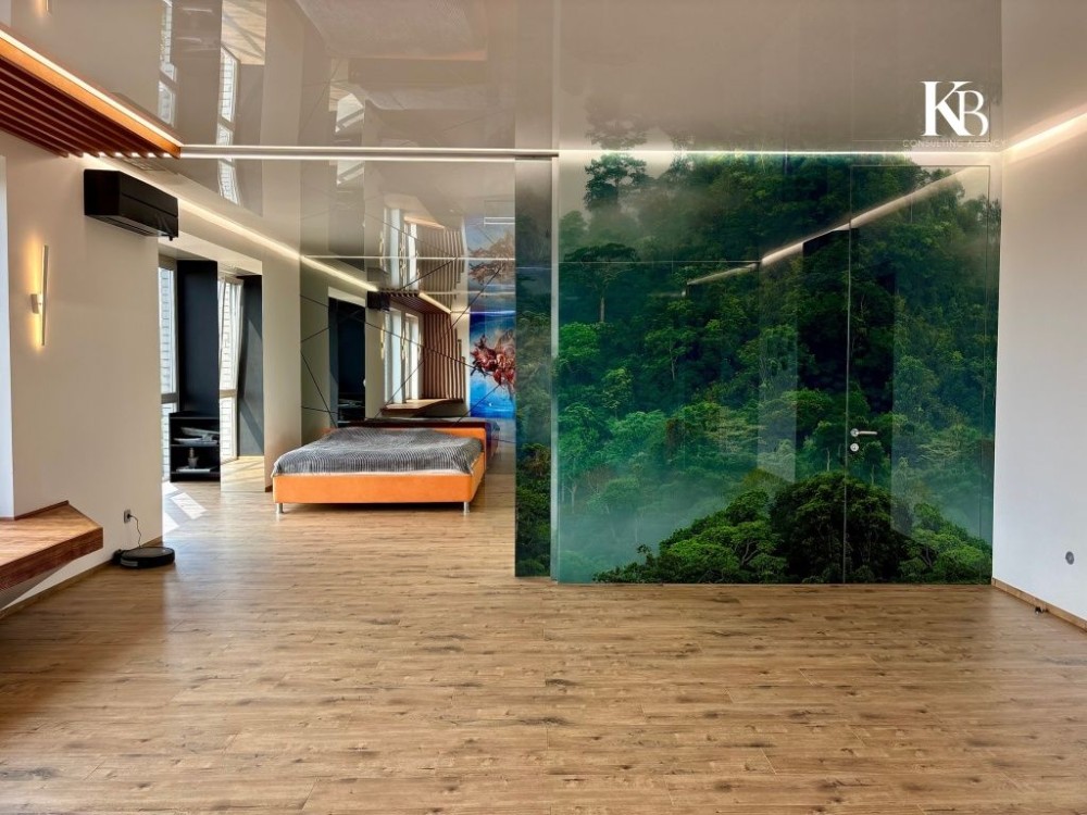 Панорамне вітражне скління на дві сторони — простір, де кожен ранок починається з краєвидів.