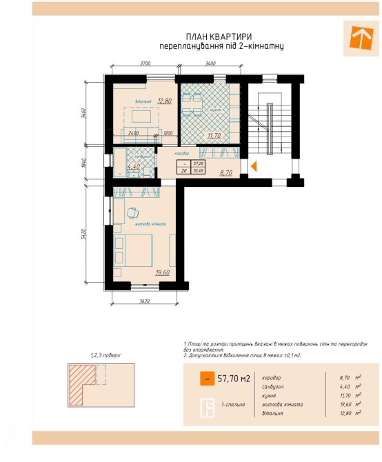 Площа: 57,7 м²