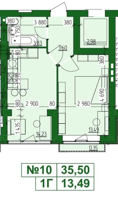 • Общая площадь 36 м2