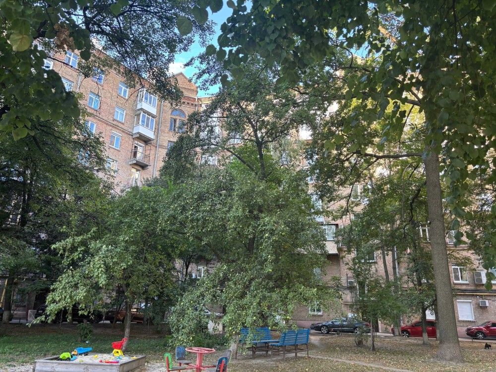 Квартира розташована на 6 поверсі 7 поверхового будинку в престижній сталінці 1956 року з ліфтом.