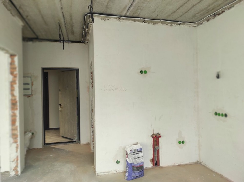 Чорнове оздоблення: стяжка, штукатурка, електрощит, заведені всі комунікації