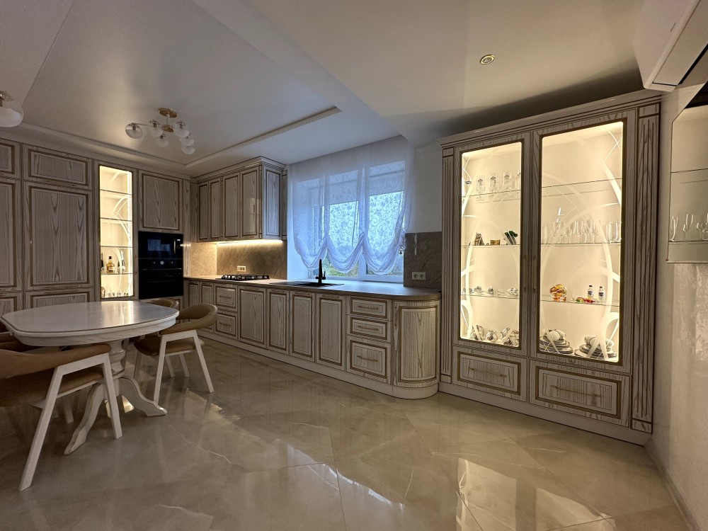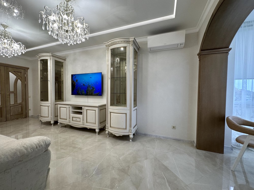 Пропонуємо вашій увазі чудову квартиру в новому будинку, що поєднує в собі розкіш та комфорт. Загальна площа 100 м², розташована на середньому поверсі, з дорогим ремонтом і меблями з натурального дерева.