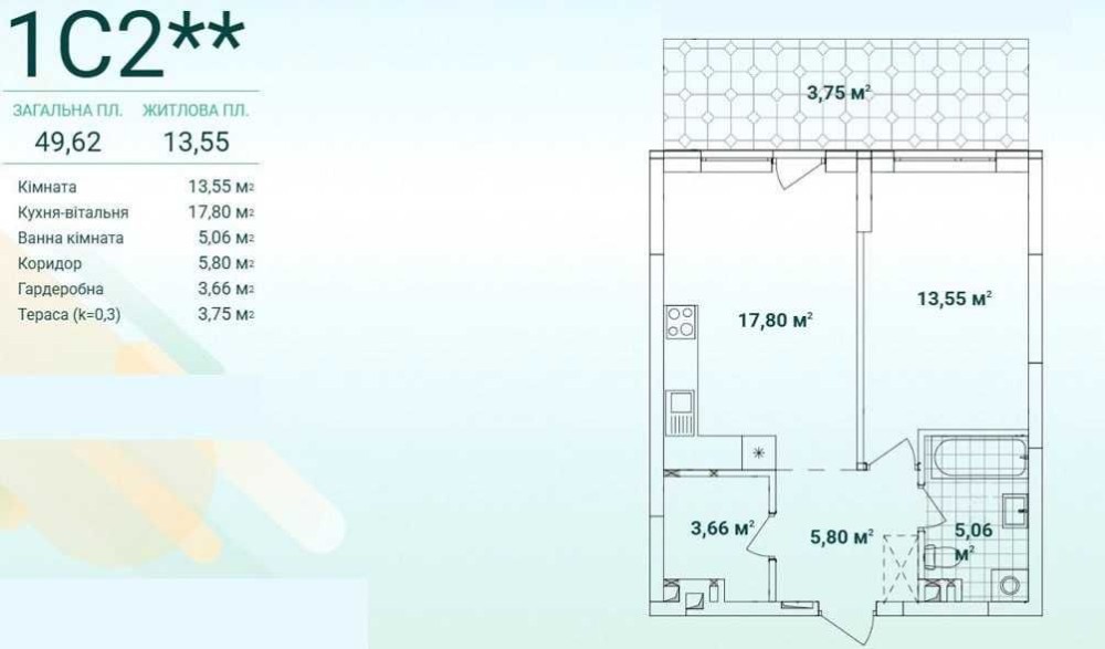 Загальна площа:49,62 м.кв