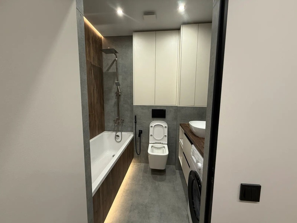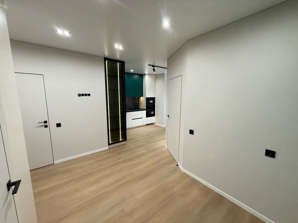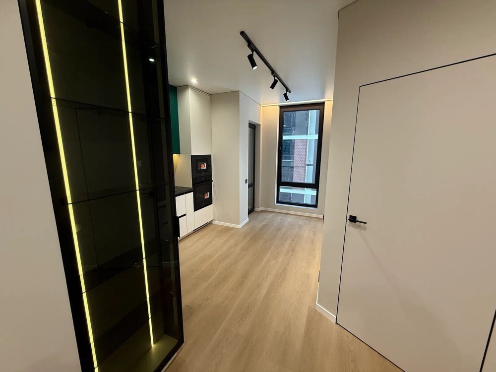 Продається повністю укомплектована півторакімнатна квартира з якісним сучасним ремонтом у житловому комплексі «Манхеттен». Квартира має зручне планування: простора кухня, окрема спальня, зона відпочинку з розкладним диваном, прихожа та санвузол. Кухня обладнана меблями та технікою — вбудований холодильник, посудомийна машина, духовка, мікрохвильова піч, індукційна поверхня, обідня зона та невелика кладова . Санвузол з ванною та тропічним душем, інсталяцією, умивальником, пральною машиною та місцем для зберігання. У прихожій дзеркало у повний зріст, шафа для верхнього одягу та кондиціонер. ЖК «Манхеттен» закритого типу, з охороною, відеоспостереженням, підземним паркінгом, дитячими та спортивними майданчиками. Поруч є міське озеро, центр міста, магазини, кафе, ресторани, школи та садочки. Квартира повністю готова для комфортного проживання без додаткових витрат.