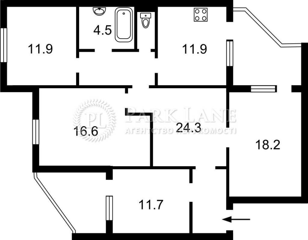 площа: 107,0\58,7\11,9; Планування квартири складається з вільних та просторих кімнат. Вікна лоджій виходять у тихі та зелені двори з двох сторін будинку. Квартира добре отаплюється зимою та прохолодна влітку. Поруч з будинком школи, гімназія, дитячі садки, супермаркет, магазин біля дому, аптеки, озеро