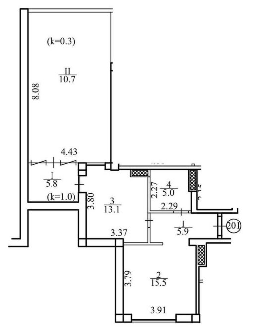 • Общая площадь 56 м2