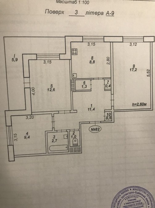 • Площадь кухни 9 м2