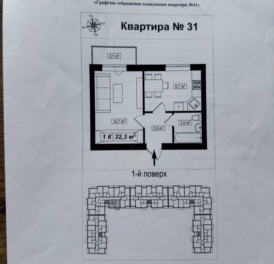 Продам однокімнатну квартиру 33 м.кв на першому поверсі в новозбудованому будинку. Квартира тепла, вікна та балконом виходять в центр будинку, на (дитяча площадка). Будинок введений в експлуатацію!!!