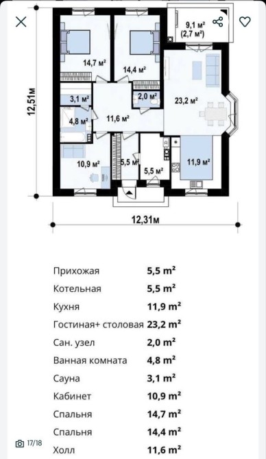 • Общая площадь 110 м2