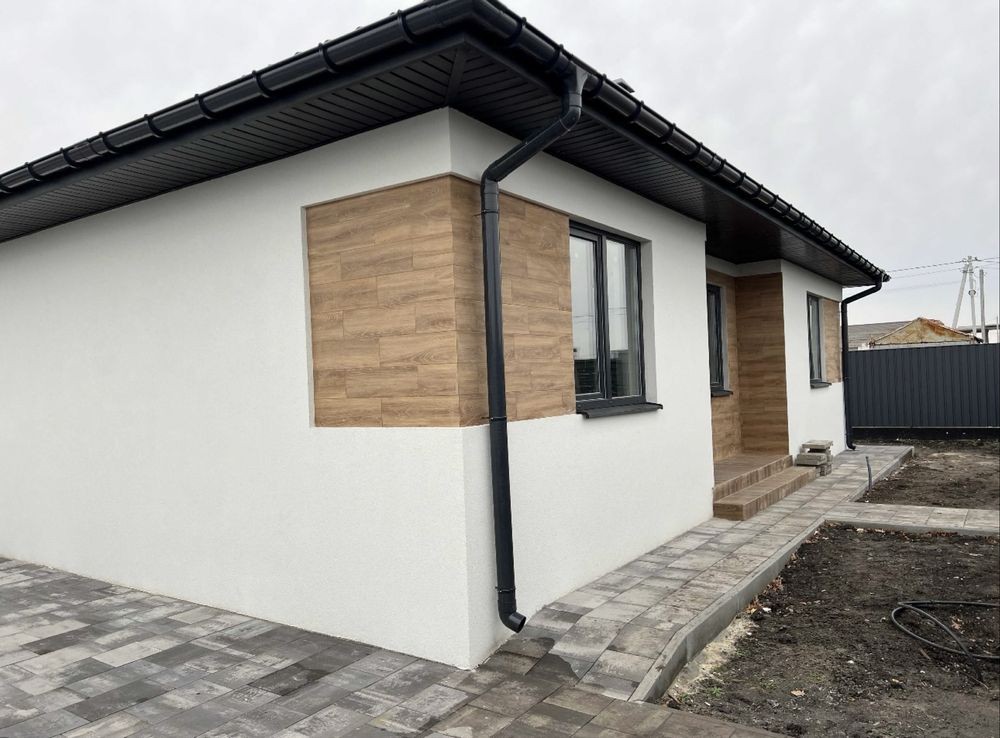 Будинок площею 110 кв.м на ділянці 6 соток, побудований у 2023 році. Повністю підготовлений до чистового ремонту: зроблено розводку електрики, сантехніки, встановлено систему опалення та теплі підлоги, виконано штукатурку стін, плитку в санвузлах, залиту стяжку підлоги. Стелі в процесі монтажу.