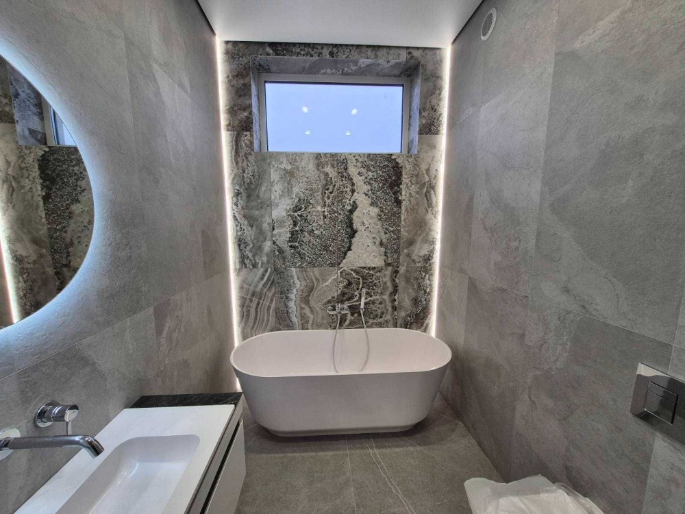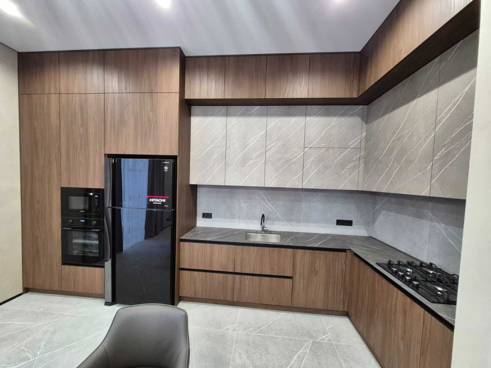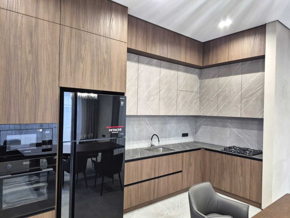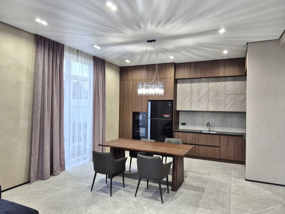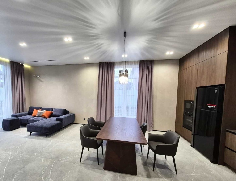 Продам новий житловий будинок з готовим сучасним ремонтом. Загальна опалювальна площа - 135,7 кв.м.+гараж 29,0кв.м. (+ погріб)+тераса 27,3кв.м. Будинок одноповерховий, знаходиться в престижному мікрорайоні Яр-2 ("Баварія"), земельна ділянка прямокутної форми, площею 10сот. Рік побудови - 2025р. Будинок складається із 2 дитячих кімнат, майстер - спальні з окремим санвузлом та гардеробною, загального санвузла, кладової, котельні, кухні -студії, гаражу та тераси. Комунікації усі в наявності: електрика, газ, каналізація, вода. Опалення - газовий котел Bosch конденсаційний, тепла підлога по усьому будинку. При виконанні ремонтних робіт були використані сучасні будівельні матеріали (змішувачі прихованого монтажу, підвісна сантехніка, трекові системи на стелі), надійна та сучасна побутова техніка відомих виробників Bosch. Samsung, а саме повноцінна вбудована посудомийна машина, вбудована мікрохвильова піч, електрична духова шафа, широкий холодильник Hitachi. Висота стелі - 3,30м., великі панорамні вікна виробництва Kömmerling, скляні вхідні двері з алюмінієвого профілю. Усе, що є на фото - залишається і входе у вартість будинку.