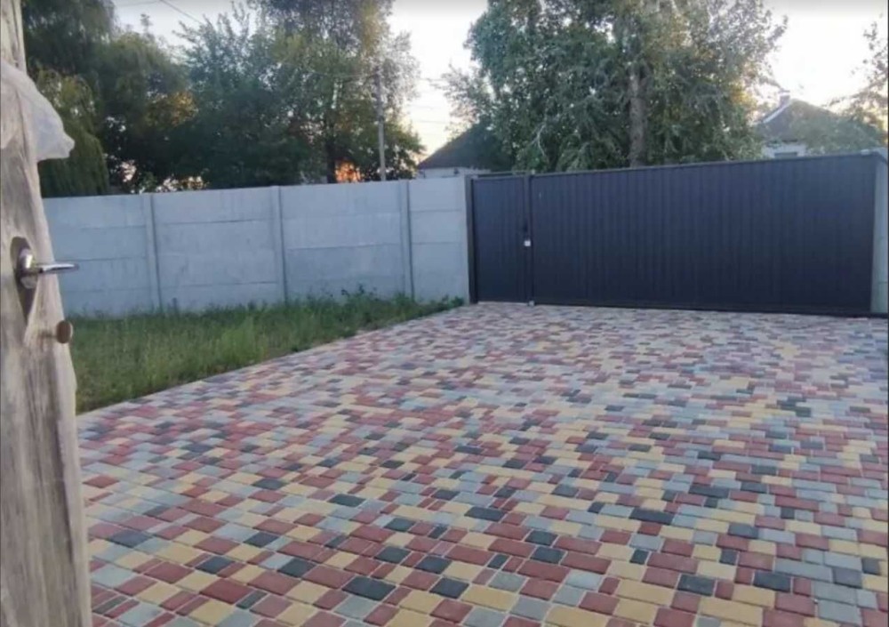 Ділянка 5 соток з тротуарною плиткою, достатньо місця для паркування 2х + авто. Багато місця за парканом.