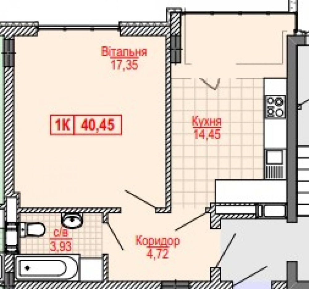 • Общая площадь 40 м2