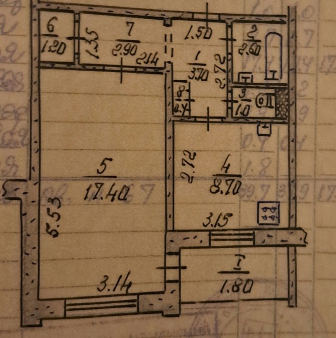 • Площадь кухни 8.7 м2