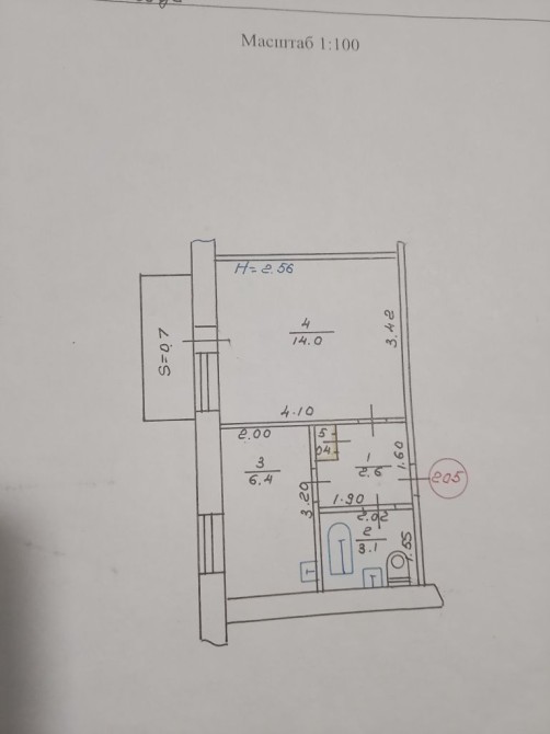 • Площадь кухни 6.4 м2