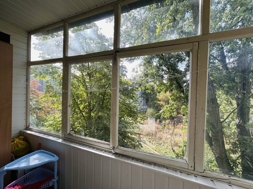 Квартира на 3 му поверсі не кутова . Вікна пластикові, балкон засклений деревʼяною рамою .В квартирі жилий стан, меблі залишаються, є підвал . До зупинки пару хвилин.