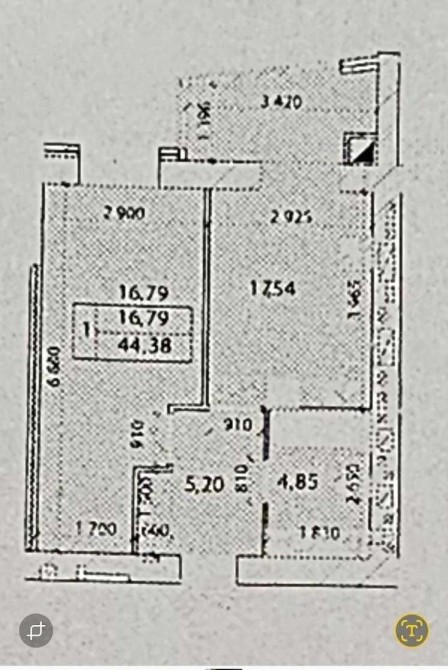 • Общая площадь 44 м2