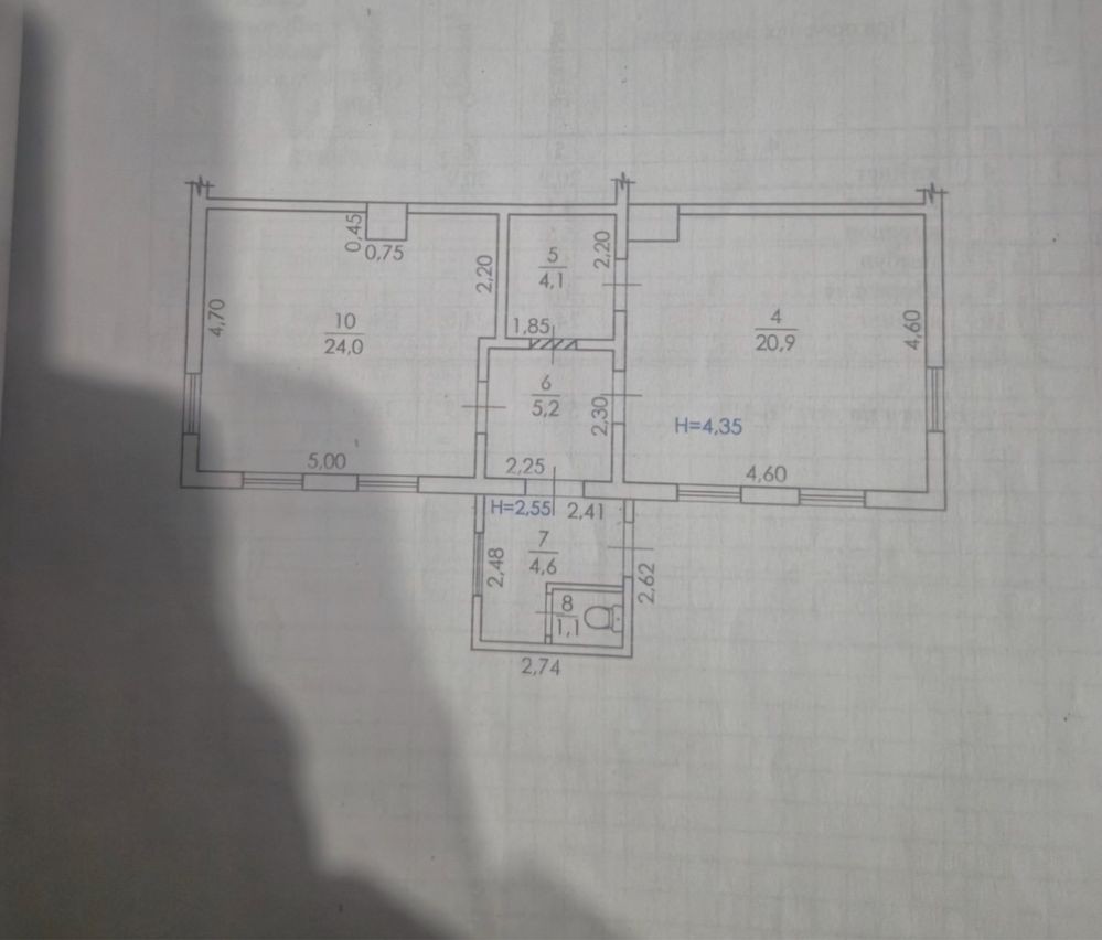 В помещение 2 кабинета 24м2 и 20м2 ,предбанник, коридор, туалет.