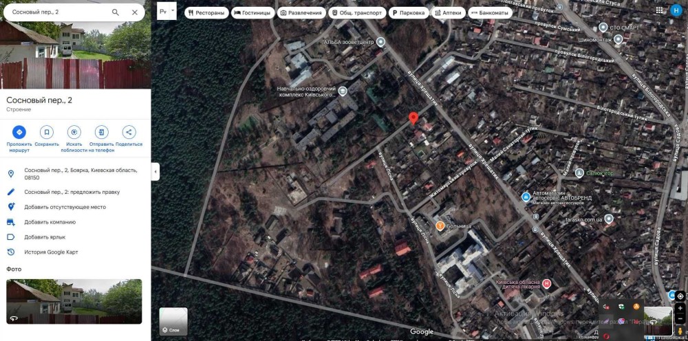 Ця будівля розташована в мальовничій території міста Бойарка регіону Києва в 15 км від Києва на земельній ділянці з площею 0,6542 га.