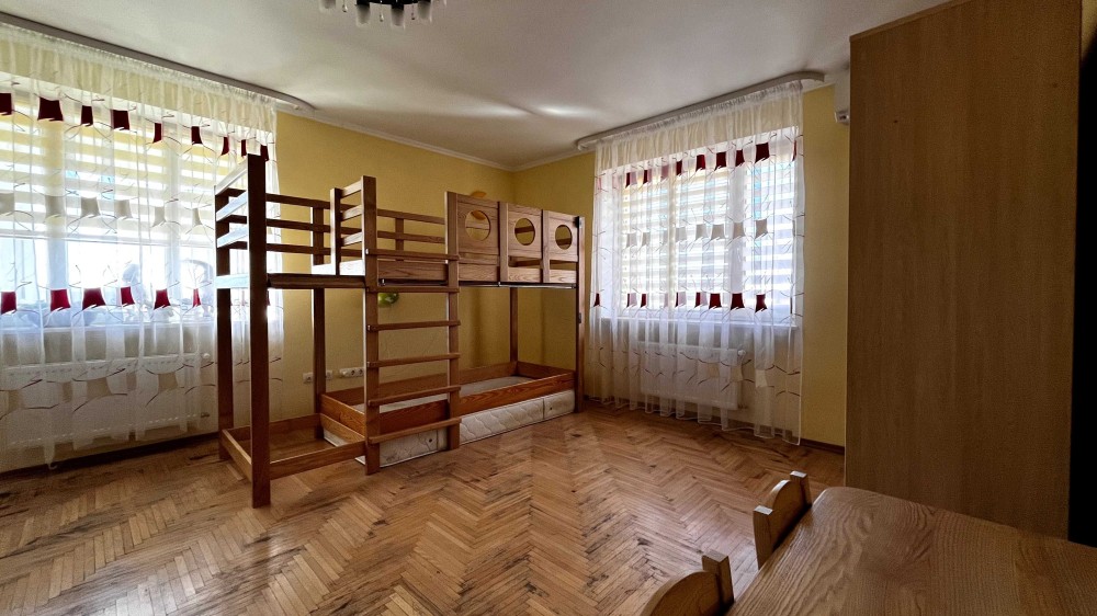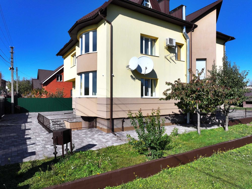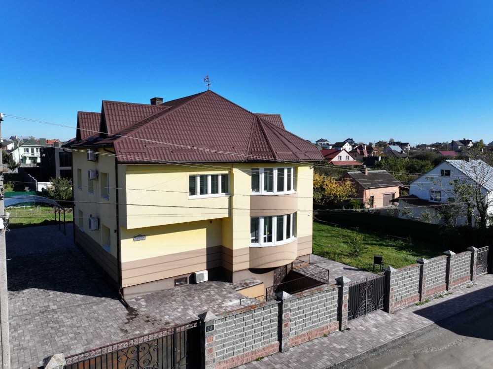 Площа: 230м² – кухня 18м2, вітальня, 4 окремі кімнати (з двома гардеробними), 2 санвузли + мансарда та цокольний поверх, де є спортзал, котельня, сауна та додатковий санвузол.