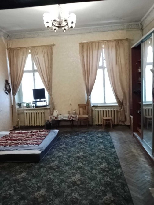 Вся квартира чистая, комната светлая 25,5 кв,м - два больших окна, высокие потолки. В комнату подведена вода (свой счётчик учёта) , кухня 6 кв.м на двоих, колонка. Санузел на троих раздельный. Красивый вид из окон на город. Мраморная лестница. Дом Памятник Архитектуры, крепкий, фасадный. Бельгийка. Отличная транспортная развязка. Супермаркеты, центральный рынок, близость к лучшим городским пляжам.