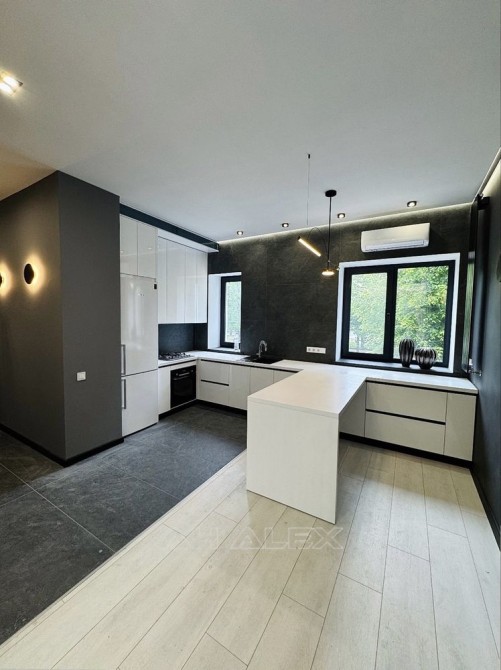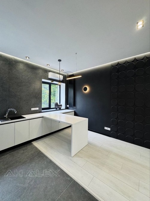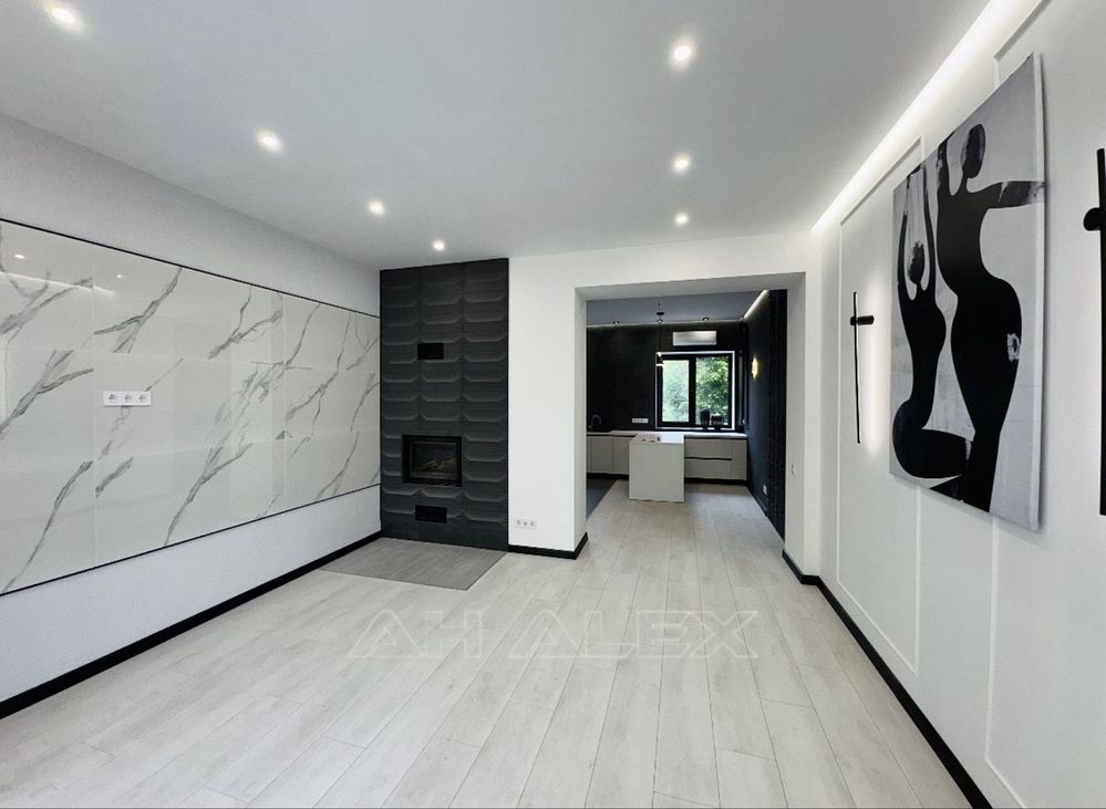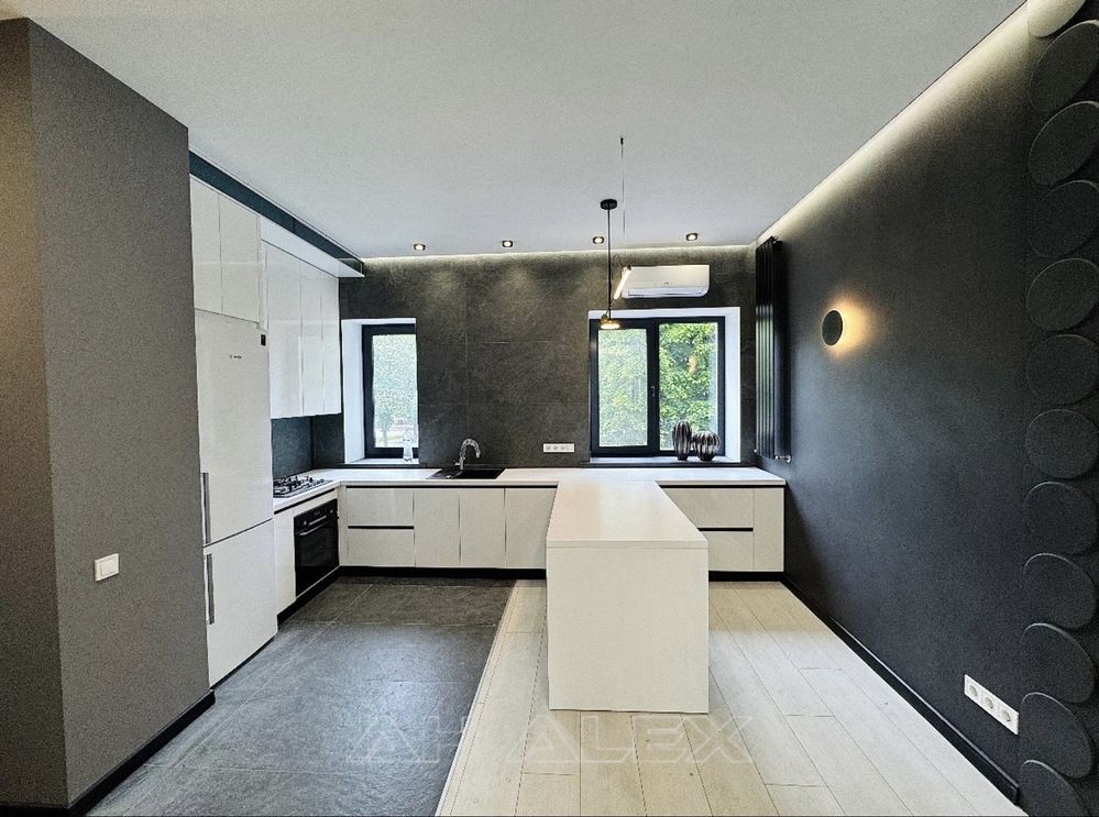 Стан: тільки після ремонту, ніхто не проживав! Кухня-студія з вбудованою технікою (варильна поверхня, духова шафа, холодильник, мийка з чорною сантехнікою) , газ двоконтурний котел . Дизайнерський камін . Оригінальне освітлення: LED-підсвітка, стильні настінні бра та дизайнерські світильники .
