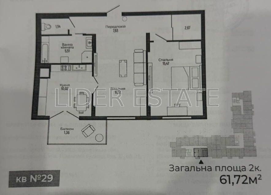 • Общая площадь 61.72 м2