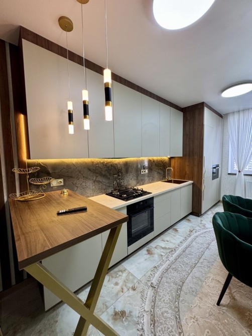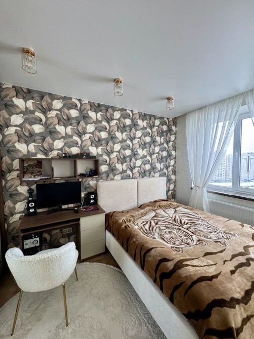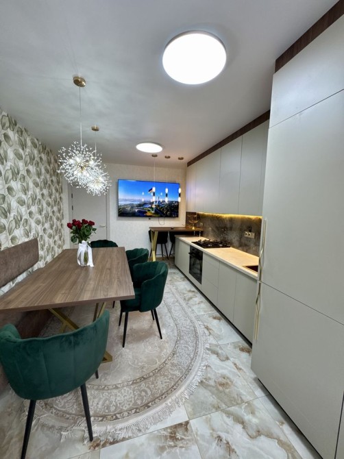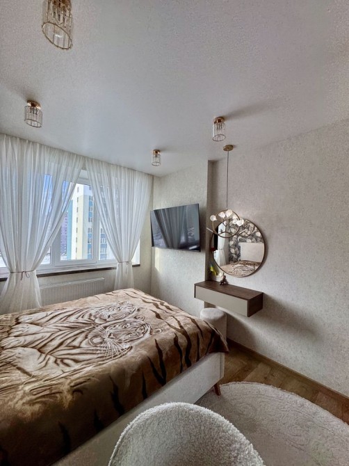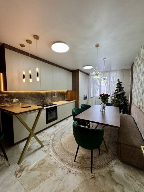 Чудове планування- велика кухня ( 18м2) посередині, кімнати просторі по дві сторони від кухні, роздільний санвузол, великий теплий балкон та дуже зручний коридор. Квартира повністю облаштована якісними сучасними меблями та якісною побутовою технікою( три плазмові телевізори( в двох діагональ 75), вмонтований холодильник, варильна поверхня, духова шафа, витяжка, мікрохвильова піч, пральна машина). Балкон облаштований сушкою для білизни.