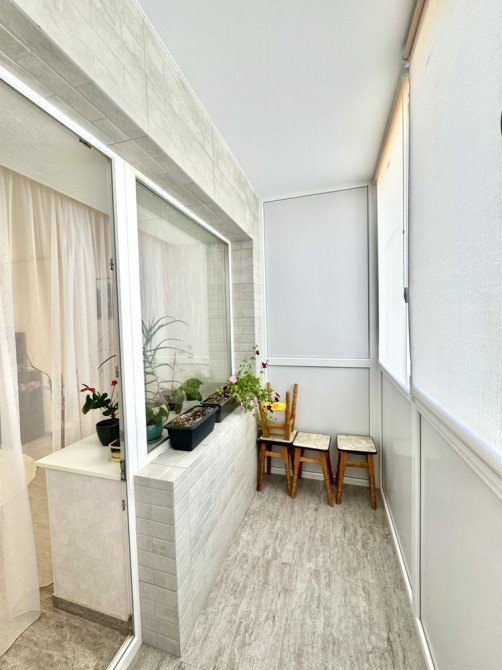 По планировке в квартире: балкон с залы капитально сделаный и остеклен, со спальной комнаты была лоджия и продлили увеличили жилую зону куда вместился шкаф и письменный стол.