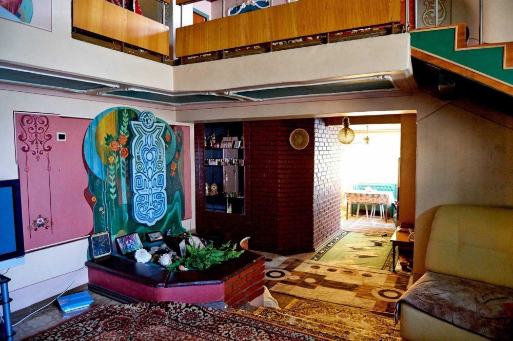 Внутренняя отделка единственная в своем роде, росписи на полотнах, гипсовая лепка -  все ручная работа.