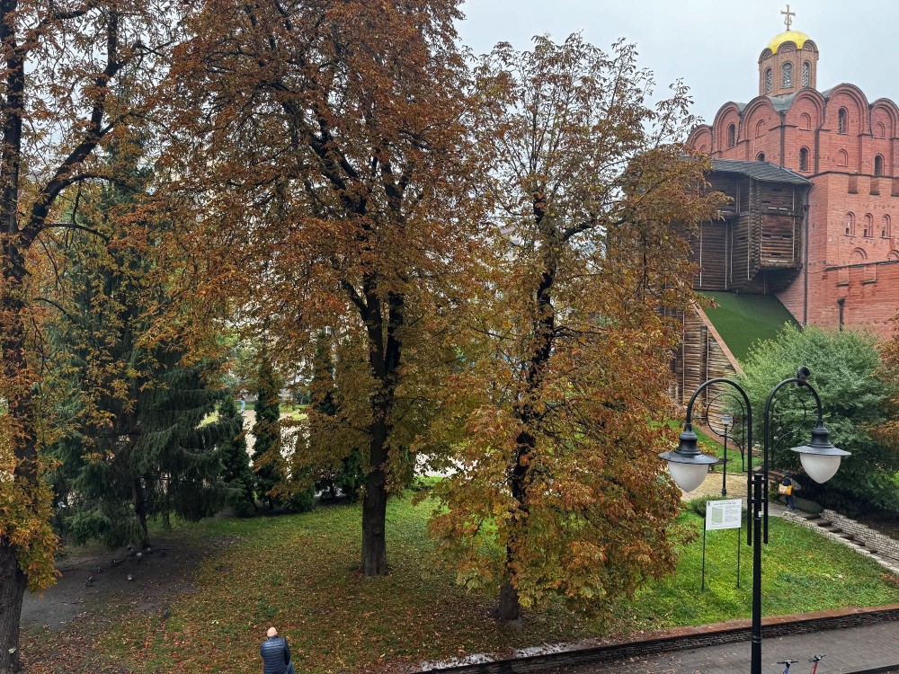 Фасадний дореволюційний будинок у самому серці старого Києва, навпроти скверу Золотих Воріт.