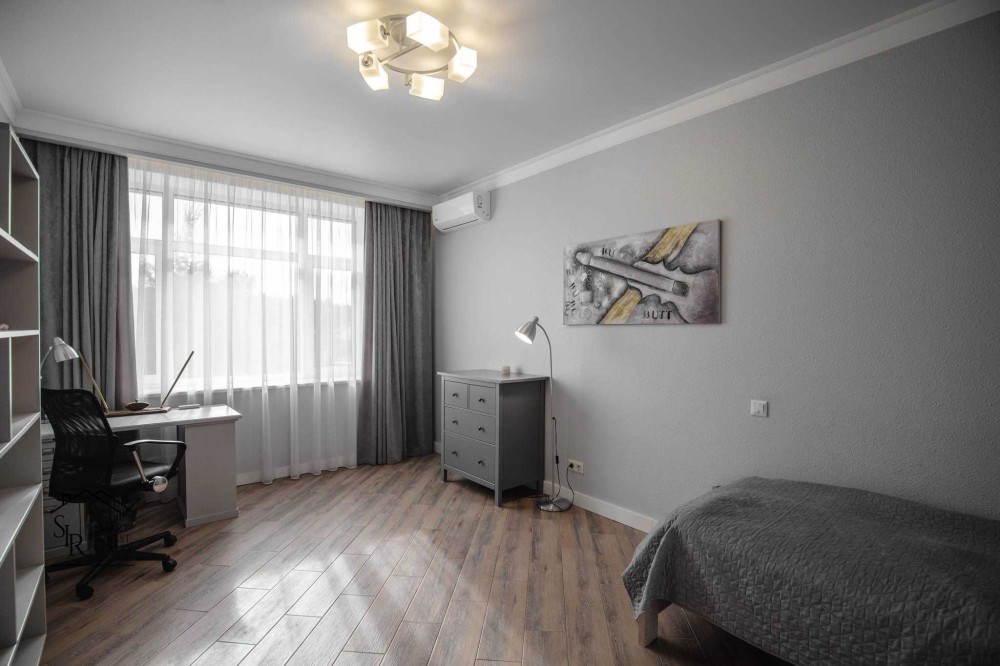 Будинок, у якому все продумано для вашого комфорту. Дизайнерський ремонт із використанням преміальних матеріалів, сучасних меблів та ексклюзивних антикварних акцентів. Високі стелі (3,1 м) — багато світла та простору. Функціональне планування для великої родини та гостей.
