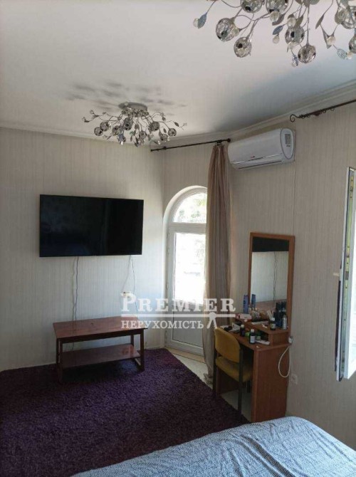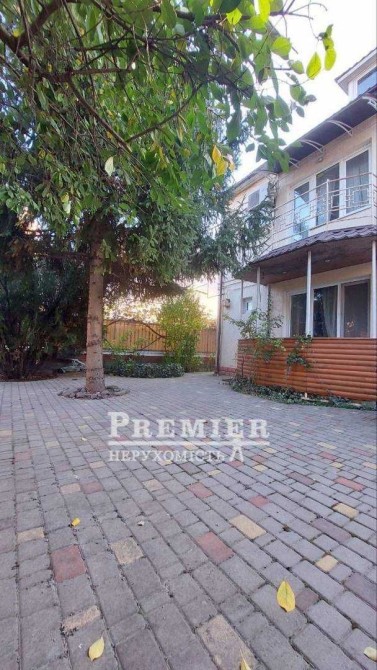 Матеріал будівництва ракушняк. На першому поверсі передпокій, вітальня, кухня-їдальня, санвузол з ванною. Другий поверх: вітальня з балконом, три кімнати, з одним виходом на балкон, санвузол із ванною. Мансарда: вітальня, спальня та санвузол.