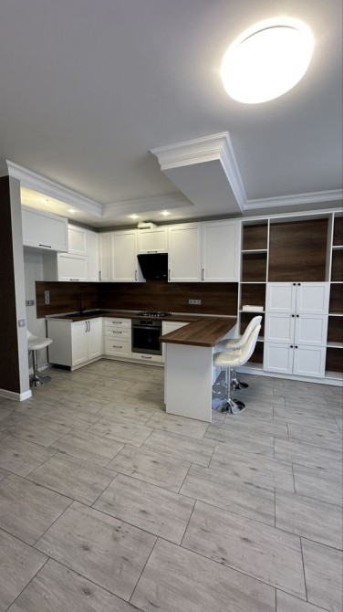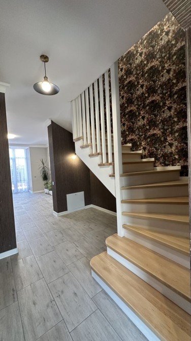 На першому поверсі тепла підлога по всій площі. Велика кухня- вітальня з сучасними вбудованими кухонними меблями, газова плита, духова шафа, витяжка, гостьовий санвузол, нові деревʼяні сходи під якими зроблені виходи для монтування шафи.