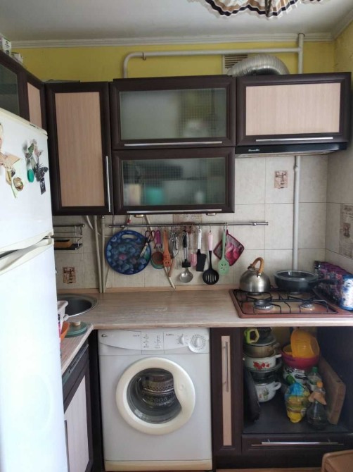 Комнаты раздельные, непроходные, перепланировка официально сделана. Раздельный сан-узел, все на фото. Ванная комната в процессе ремонта. Утепленный и застекленный балкон, окна везде металло-пластик, новые, профиль REHAU, куплены под все окна жалюзи плиссе, смотрите фото. Новые входные двери. Квартира комфортная для проживания, рядом АТБ, две конечные остановки маршруток, больница, школа, отделение почты, аптека, парк, стадион.
