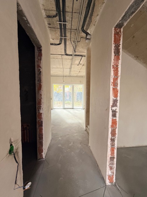 Комунікації всі підключені: газ, вода зі свердловини 62 м, електрика 7 кВт (лічильник “День-Ніч”), автономна каналізація — септик 7 м³. Продумане планування — простора кухня-вітальня, кілька кімнат, панорамні вікна та вихід у власний двір 7–8 м. Є паркінг і зручний заїзд.