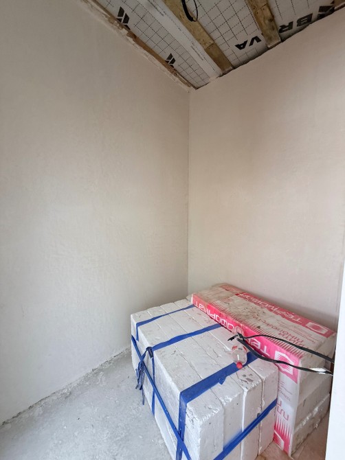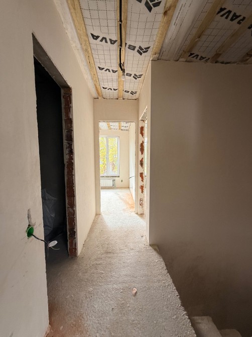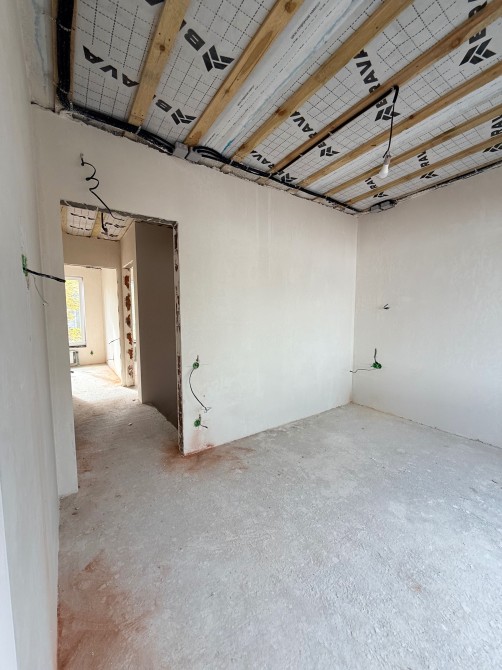 Усередині вже виконана велика частина ремонтних робіт: розведено опалення, електрику й сантехніку, встановлено радіатори, теплу підлогу по всьому першому поверху, зроблено гіпсову штукатурку стін і стяжку підлоги.