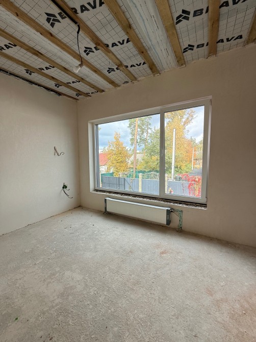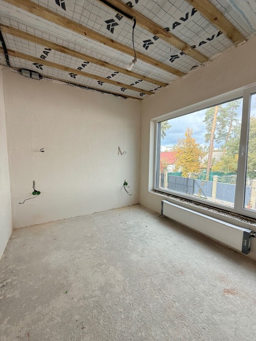 Будинок площею 100 м² збудований із керамоблоку, має утеплення 120 мм пінопласту, монолітно-стрічковий фундамент, бетонні сходи й перекриття плитами. Дах — мембранна покрівля Bauder з якісною гідро- та пароізоляцією, що гарантує довговічність і енергоефективність.