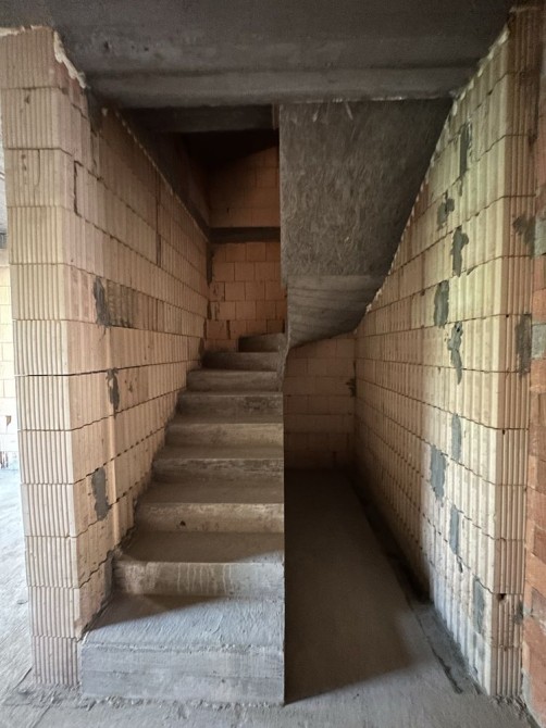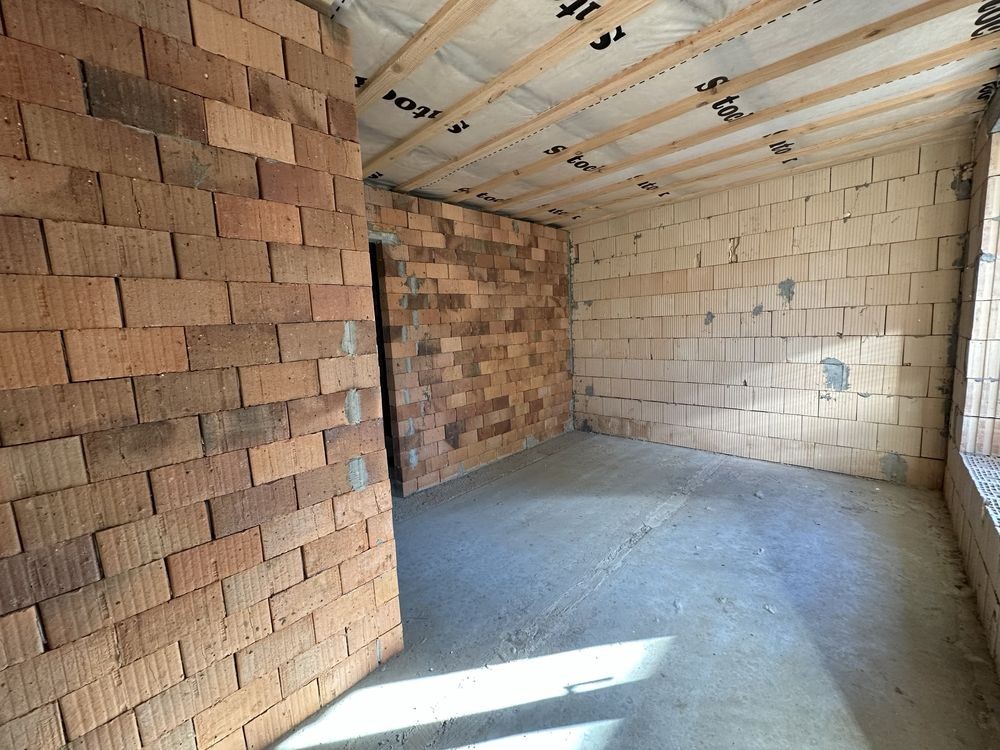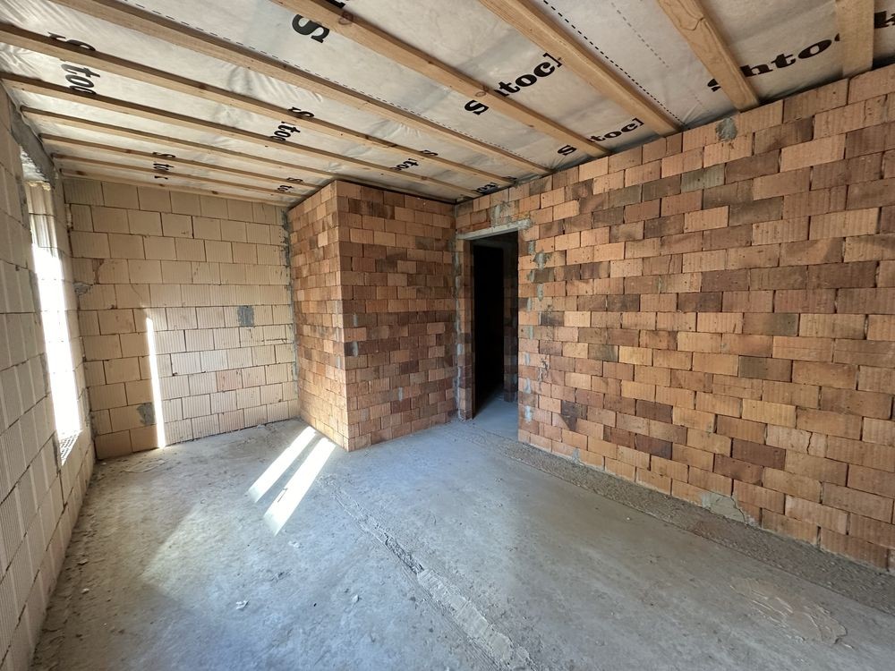 Внутрішній простір оформлений з розумом: бетонні сходи між першим і другим поверхами ведуть до мансарди площею 30 м², що створює додаткові можливості для використання — тут можна облаштувати затишний кабінет або спальню. Будинок утеплений мінеральною ватою товщиною 100 мм, а фасад виконаний у стильному поєднанні декоративної штукатурки та плитки.