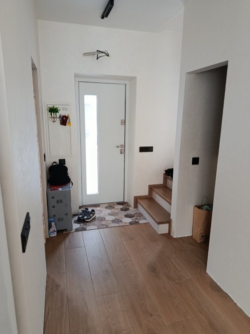 На 1 этаже кухня гостинная с выходом в свой двор (1.5 соток) ., санузел и техническая комната., гардеробная,на полу плитка с подогревом.