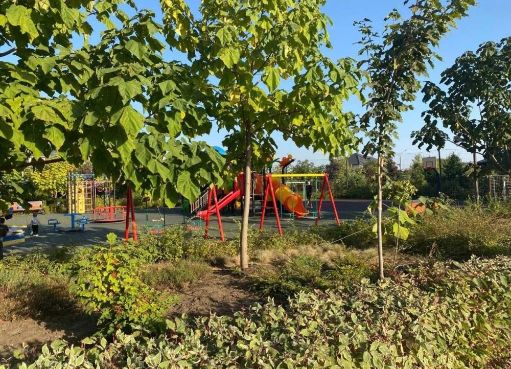 Рядом с домом есть парк с аллеями, детскими и спортивными площадками, Аквапарк, ресторан, храм, магазины.